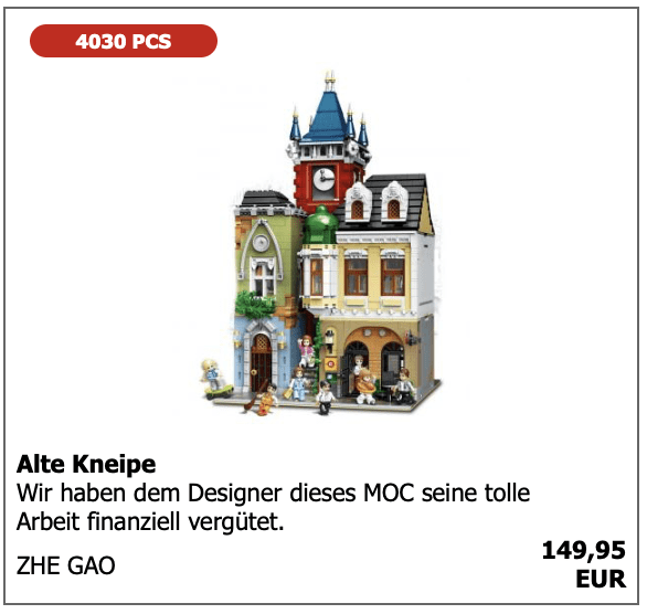 Etwas anders sieht es dann aber aus, wenn man MOCs nimmt und daraus Sets produziert ohne die Designer der MOCs dabei um Erlaubnis zu fragen. Eine Praktik, die bei einigen chinesischen Herstellern leider nicht unüblich ist.