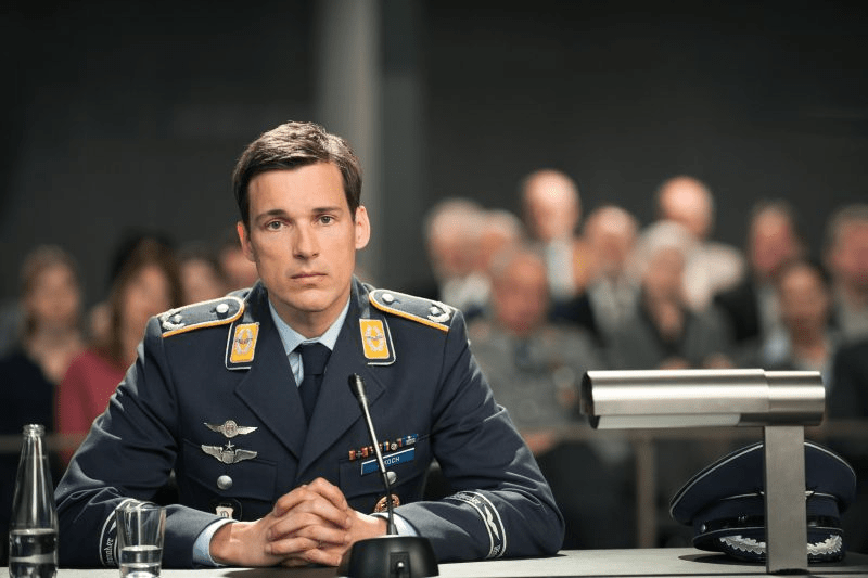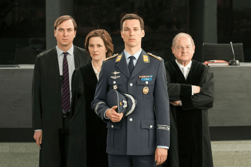 Jetzt ist natürlich die ganze Geschichte in dem Film erfunden und auch würde eine Gerichtsverhandlung in so einem Fall deutlich länger als knapp 1,5 Stunden dauern, aber es wird sehr gut eine Situation dargestellt, auf deren Grundlage man so einen Fall gut diskutieren kann. Klar, es gab da schon viele Diskussionen darüber als es um das entsprechende Gesetz ging, die es dem Verteidigungsminister im Ernstfall erlauben sollte, einen solchen Abschuss zu befehlen. Aber es geht hier gar nicht um die Frage, ob der Staat in so einem Fall den Abschuss eines Zivilflugzeugs anordnen darf – diese Frage hat das Bundesverfassungsgericht schließlich auch deutlich mit „Nein“ beantwortet – sondern darum, ob ein dieser Pilot wegen 164fachen Mordes verurteilt werden sollte.