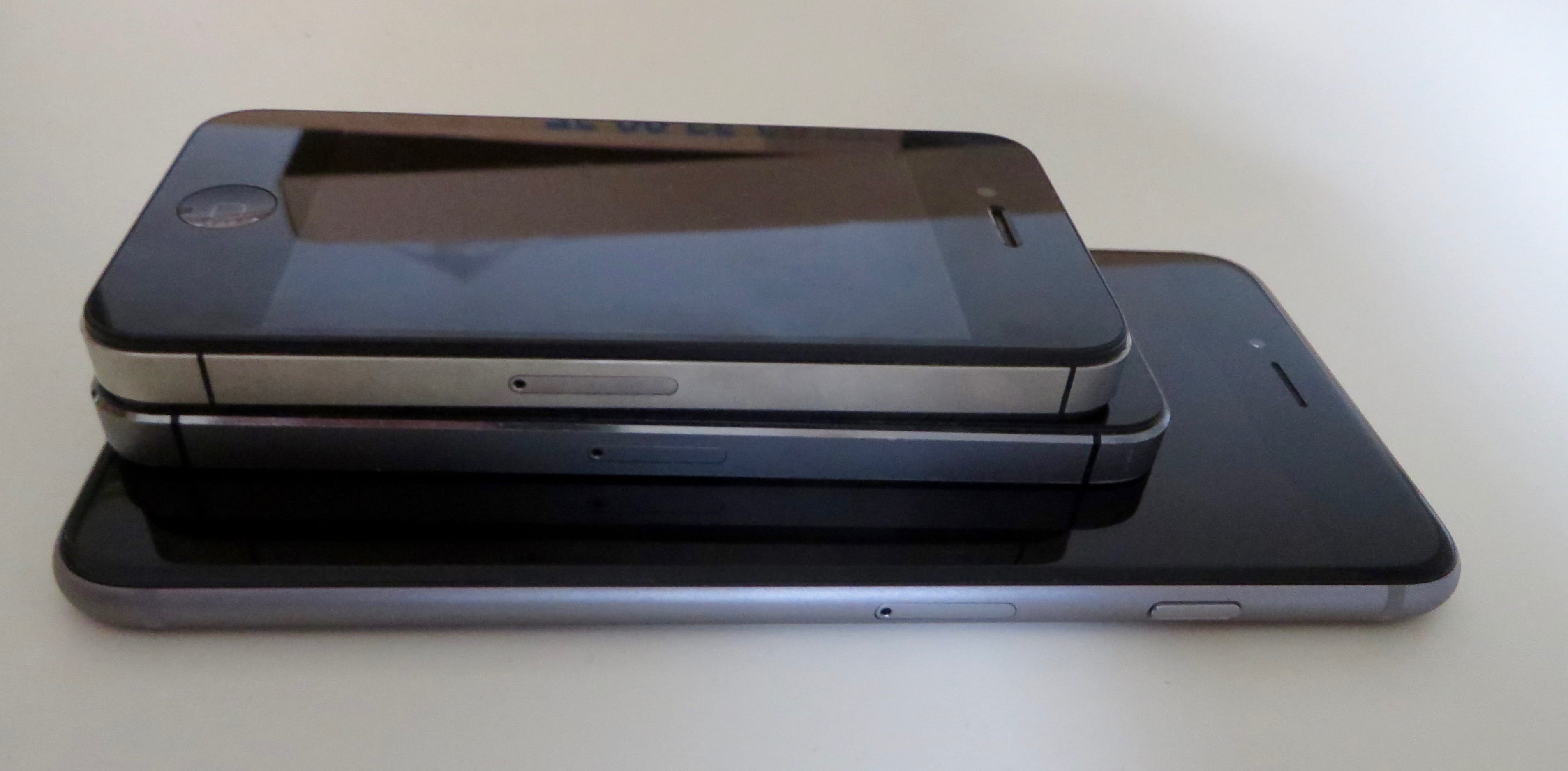 Ja, ich bin zufrieden. Und tatsächlich habe ich mich nicht nur an die Größe gewöhnt, ich frage mich inzwischen, wie ich so lange mit den kleinen iPhones klar gekommen bin. Apropos klein: Vor den Smartphones sind die Mobiltelefone ja immer kleiner geworden, irgendwann dachten wir, dass die bald so klein sind, dass sie nur noch aus einem Armband für die Tastatur und einem Knopf im Ohr bestehen würden. Mit Smartwatch und Headset sind wir ja fast so weit, nur dass da dann noch irgendwo ein Smartphone in der Tasche steckt.