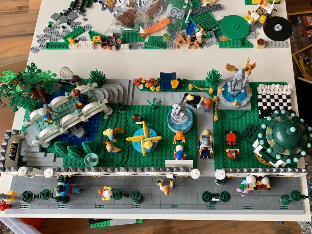So habe ich einige Stunden am Wochenende zugebracht und hatte die ganze Zeit neue Ideen, nicht nur für den Park, auch für andere Sachen. Zum Beispiel ist mein Lego-Store noch in einem zweistöckigen Gebäude untergebracht, das werde ich wohl als nächstes angehen. Und dann die Sache mit dem Avengers-Tower… Die vorhandene Basis werde ich wohl auch wieder einreissen ?
