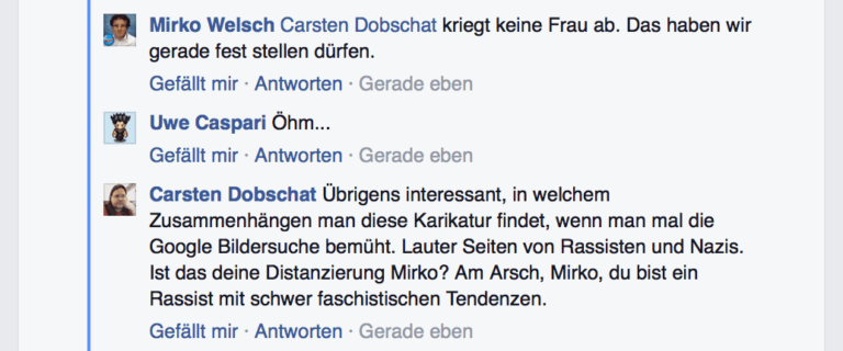 Jetzt aber mal ehrlich: Es ist schon schwer zu entscheiden, welche der beiden heute den Preis für den „Arschloch-Kommentar des Tages“ gewinnen sollte. Immerhin haben sich beide enorm Mühe gegeben, mit möglichst wenigen Worten und unbelastet von Fakten mal ein paar Likes am rechten Rand abzustauben.