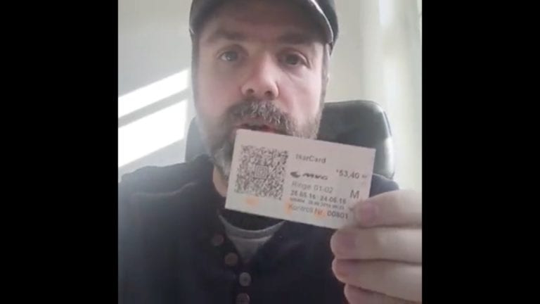 Der Herr auf dem Video-Screenshot ist Michael Praetorius. Michael Praetorius wird in dem unten eingebetteten Video seine Fahrkarte verbrennen. Obwohl das Ticket noch einen Monat lang gültig wäre. Warum er das tut? Das erklärt er im Video und das solltest du dir unbedingt anschauen. Und das gilt ganz besonders, wenn du Mitarbeiter bei der Bahn oder dem MVV bist.