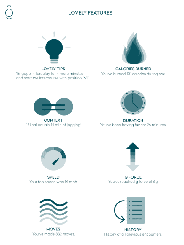 Was wie ein harmloses Sexspielzeug aussieht (Cockring mit Klitoris-Stimulator), ist zusätzlich vollgestopft mit Messtechnik und Bluetooth. Getragen wird es – natürlich – beim Sex und dann wird gemessen was das Zeug hält, an das Smartphone übermittelt und analysiert. Wie lange dauerte der Verkehr, die Geschwindigkeit(!), wie viele Kalorien wurden verbrannt usw. Und dann kann man sich das alles auswerten lassen und erhält Anleitungen, welche Stellungen man doch mal probieren solle und viele Tipps, damit der Sex besser würde. Ernsthaft: