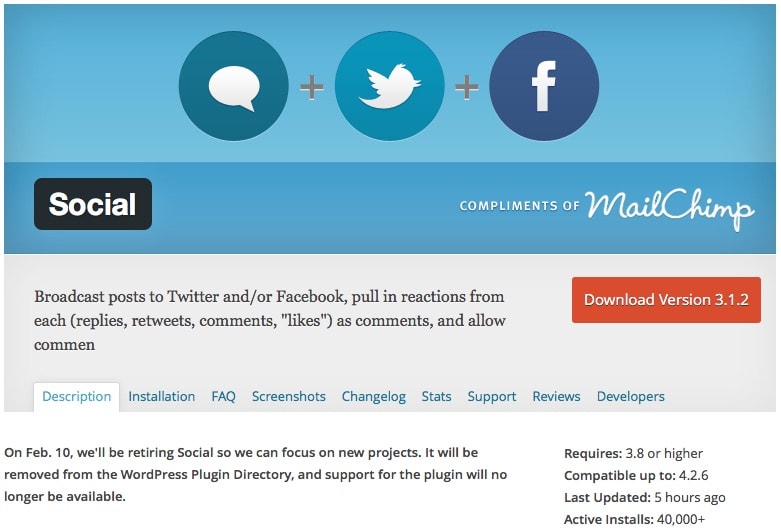 Social ist ein wirklich nettes Wordpress-PlugIn: Es dient(e) dazu neue Beiträge auf Twitter und Facebook zu verbreiten und hat dann nebenbei noch die Reaktionen von diesen Plattformen eingesammelt und als Reaktion ins Weblog geholt. Praktische Sache, um Diskussionen zu einem Beitrag eben auch bei diesem Beitrag im Blog zu haben. Damit ist nun am 10. Februar Schluß – nicht schön. Alternativen zum Posten von Beiträgen gibt es sicherlich reichlich, aber für das Einsammeln der Reaktionen kenne ich bislang keine. Dummerweise reicht für den Betrieb nicht einfach das PlugIn, es kommunizierte über einen Webservice der Entwickler mit Facebook und Twitter. Also fällt es weg, das PlugIn einfach weiter zu nutzen und einfach so einen Fork anzulegen bringt ohne den Webservice auch nicht wirklich viel, wobei man da vielleicht was machen könnte. Man müsste den Teil einfach nur neu schreiben und in das PlugIn integrieren und die Nutzer des PlugIns müssten dann jeweils das eigene Weblog als App registrieren… ja, das klingt nicht nur nach richtig viel Arbeit, das ist es auch. Zu viel Arbeit zumindest für mich, als dass ich das mal eben schnell bis zum Stichtag machen könnte.